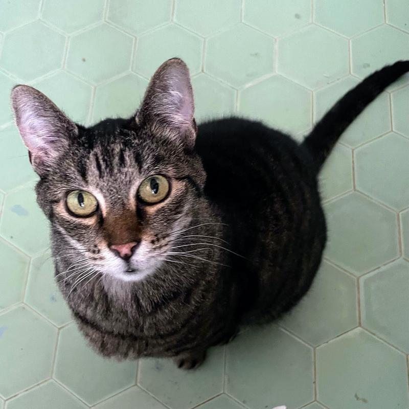 Bentley is an 11-year old short-haired brown tabby. He’s a little guarded around new people but once he gets to know you he warms right up. He especially loves head rubs and when he’s really comfortable he will show off his joyful spirit- romping all around the room batting his toys to the far corners.