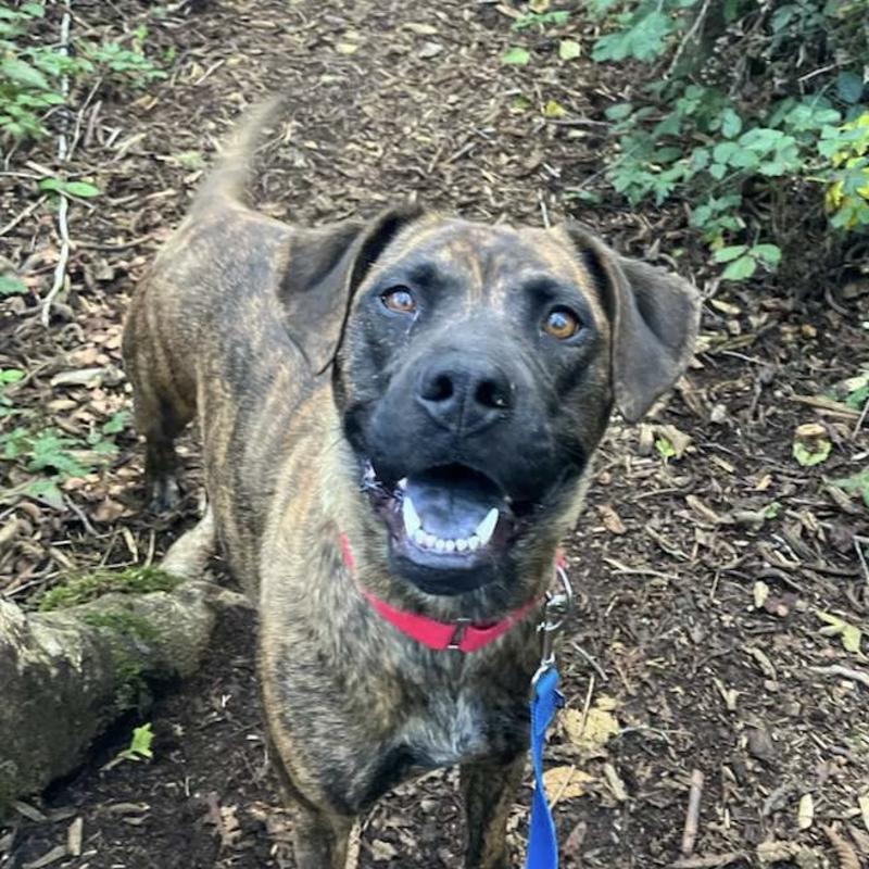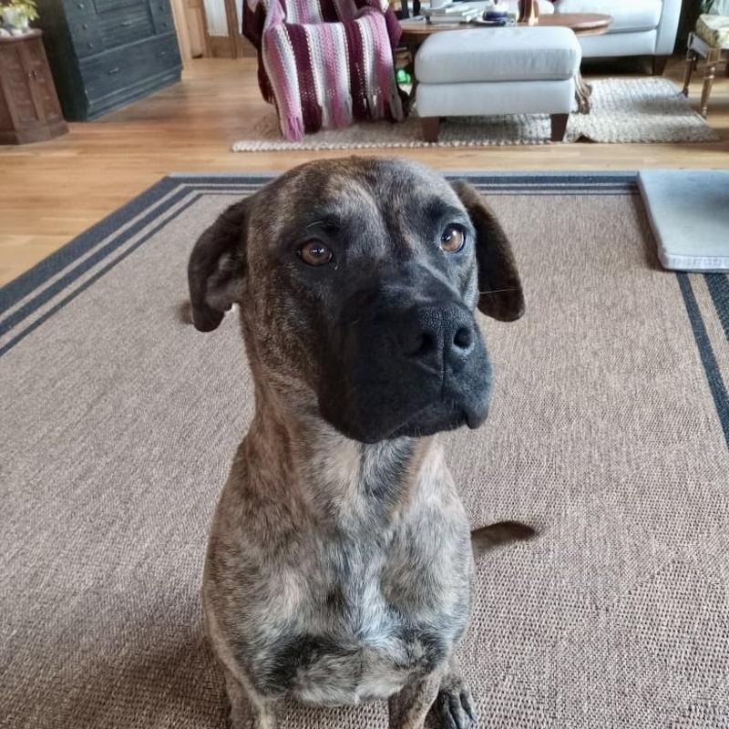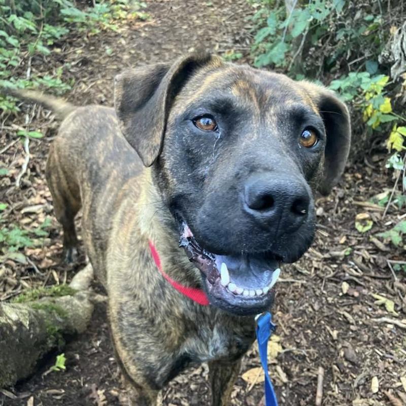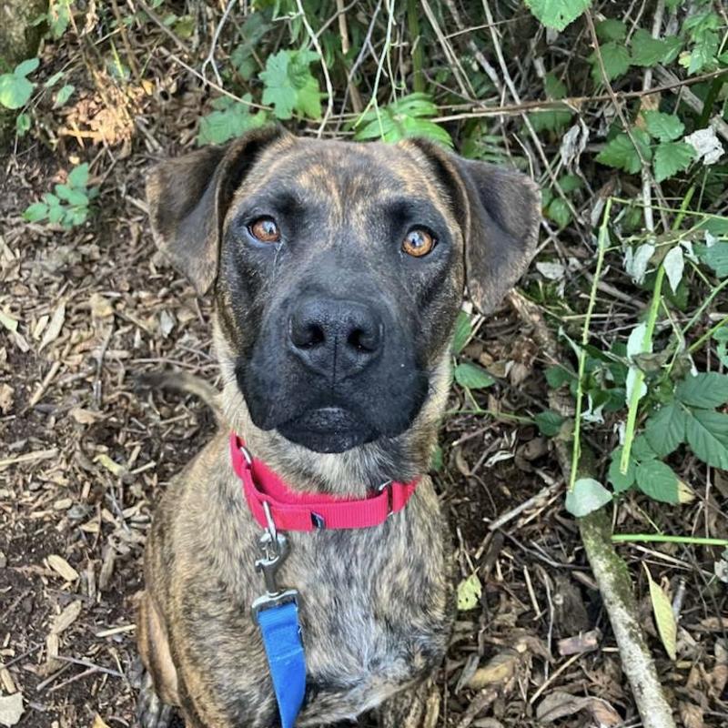 Kashi came to us with her 10 puppies. She was a great mom, but is happy those days are behind her. She is learning to walk with a gentle leader because she can be excited when she sees dogs but walks well on a lead otherwise. She is a beautiful brindle that would love to spend the rest of her life with a bestie! Are you looking for a BFF too? Adopt Kashi!