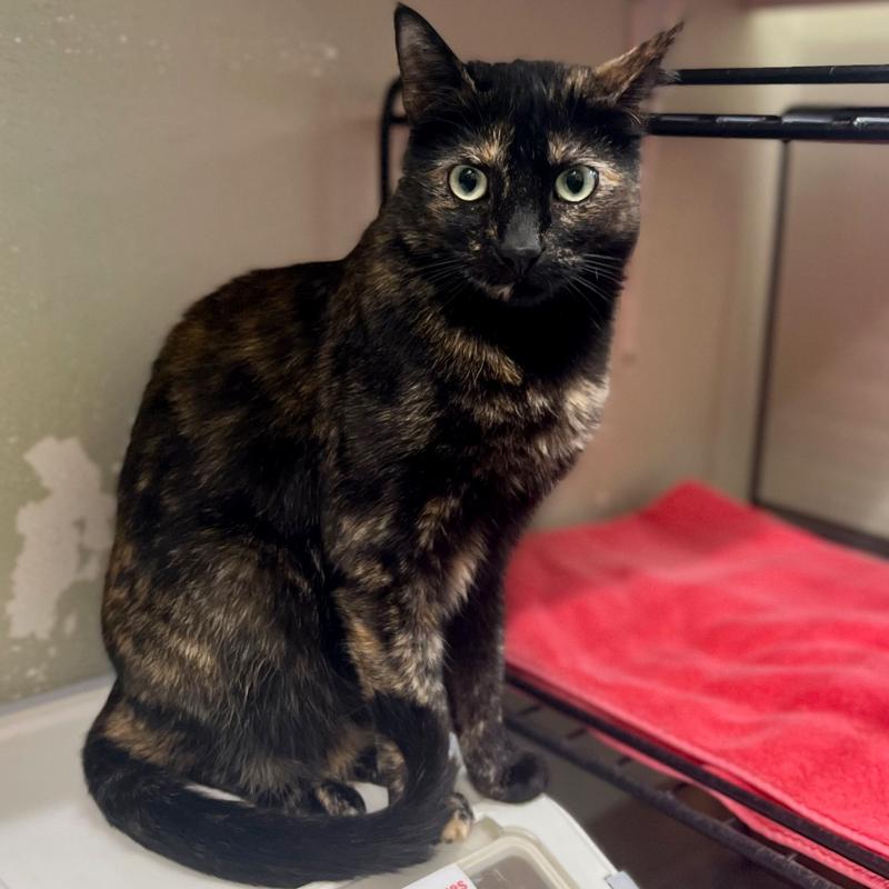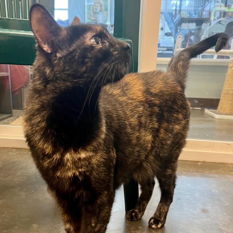 Autumn is a stunning 5-year-old tortoise with captivating green eyes and a curious spirit. She loves exploring her surroundings and discovering new adventures. This sweet kitty is ready to settle into her furever home, where her playful personality and loving nature can truly shine. Autumn is eager to meet you!