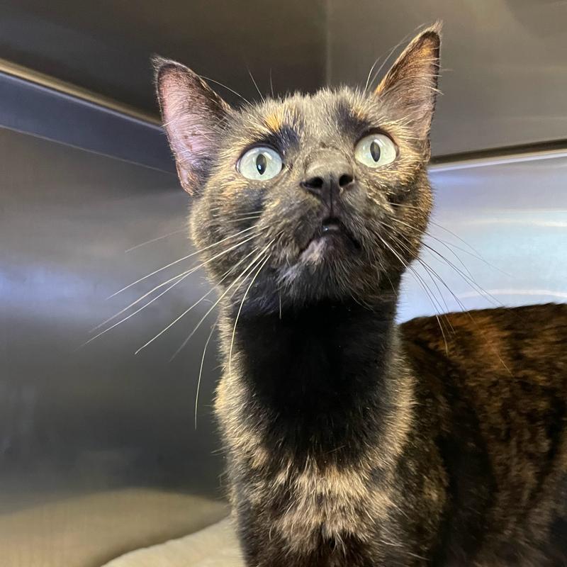 Autumn is one of those super charming tortoise shell cats that is bound to charm everyone she meets. She has a gorgeous short coat with beautiful highlights and long whiskers. She`s always up for a conversation and enjoys being around people. Autumn hasn`t proven to be the biggest fan of the other cats in the shelter, but that doesn`t mean she wouldn`t like having a friend in her forever home with the right kind of introductions. That said, she has enough personality to fill your life and home if you wanted to make her your one and only love.