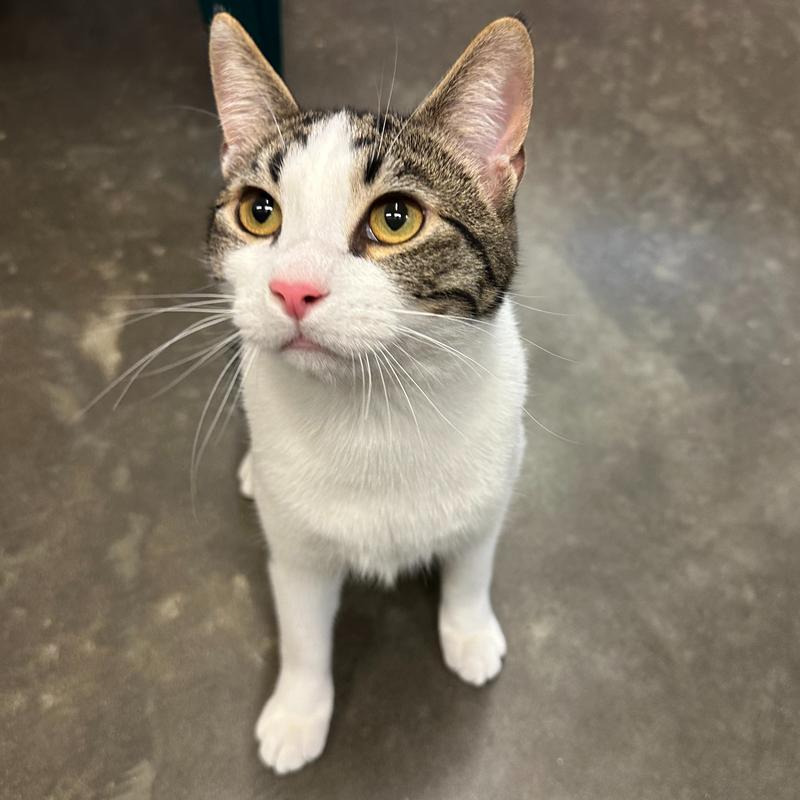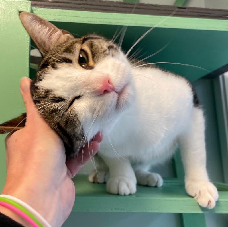 Benny is a nice boy with a lovely white and brown tabby short coat. He was abandoned by his first family and then got adopted but wasn`t welcomed by the resident cat. He`s a social boy, ready to make friends with everyone - but will need slow introductions for other cats or might thrive being the king of his own castle. At just about 1 1/2 years old, Benny is ready to start living his best life with some true companions. He`s got purr-sonality for days, loves cuddles and head rubs, and lots of love to share.