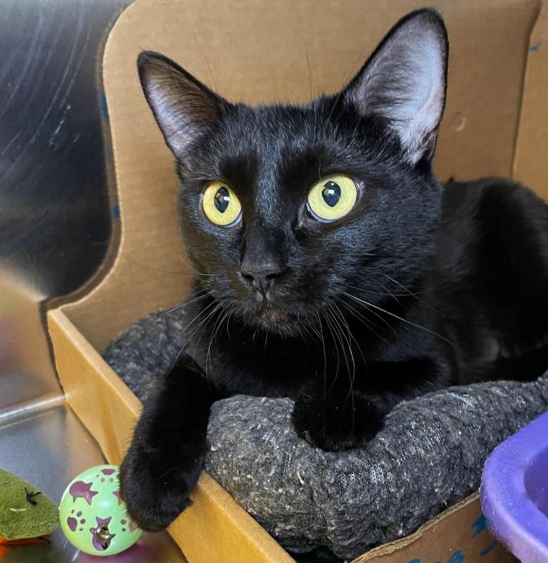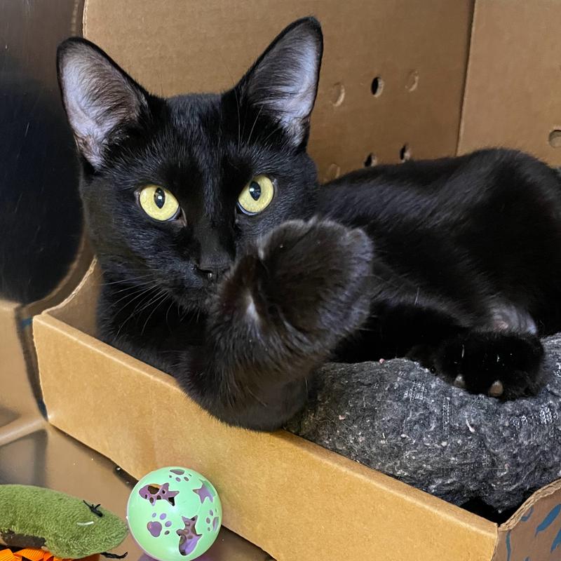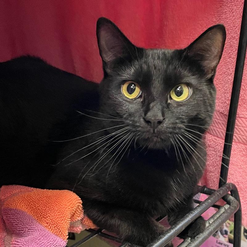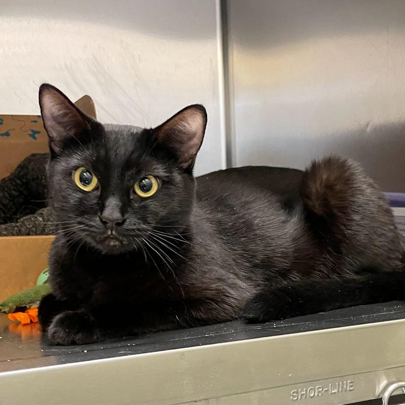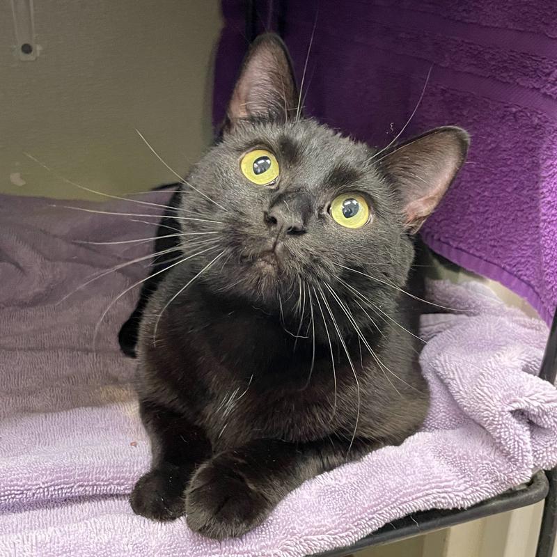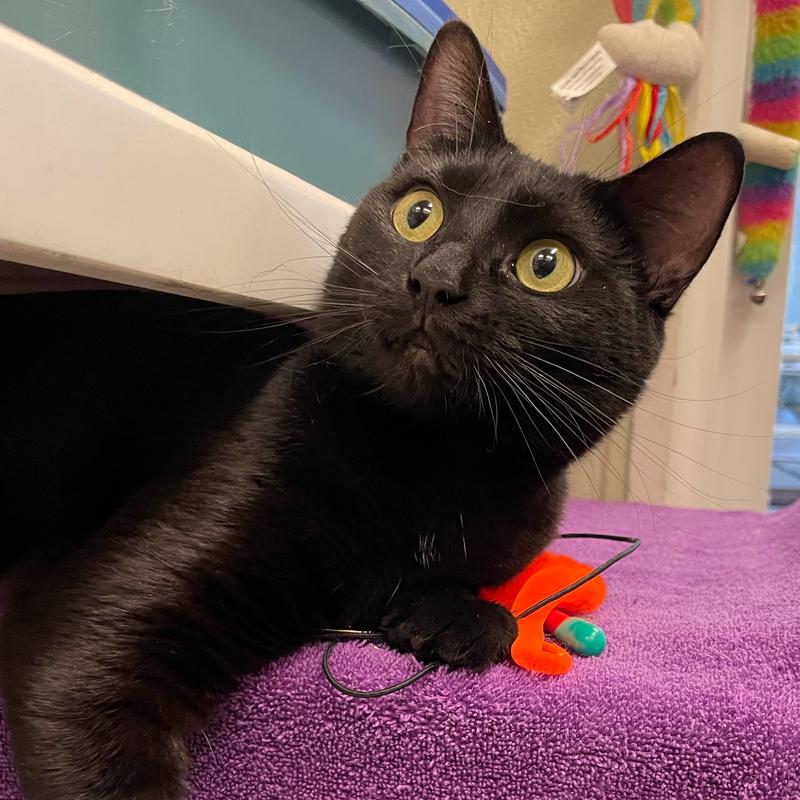 Molly is a delightful all-black girl with short and sleek fur. Her previous humans moved and didn`t take her with them so she`s now looking for a loving home to call her own. Molly has been slightly overwhelmed at the shelter but she LOVES play time with a wand toy. She knows how to make biscuits and we can see that she has a lot of love to share. Let`s find this mini house panther a place where she can blossom and find her true love(s).