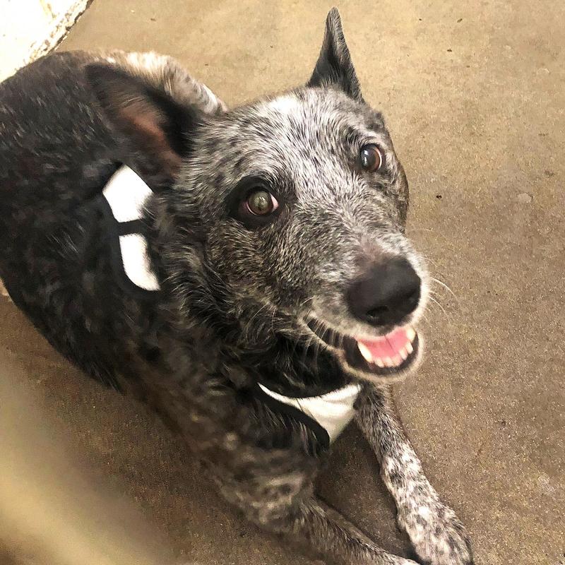 Capt Biscuits is a 58-pound Heeler mix with a handsome black-and-gray coat and plenty of personality. Full of happy energy and enthusiasm, he’s always ready for fun and adventure. He loves to play, has a big appetite for treats, and enjoys spending time with most other dogs.