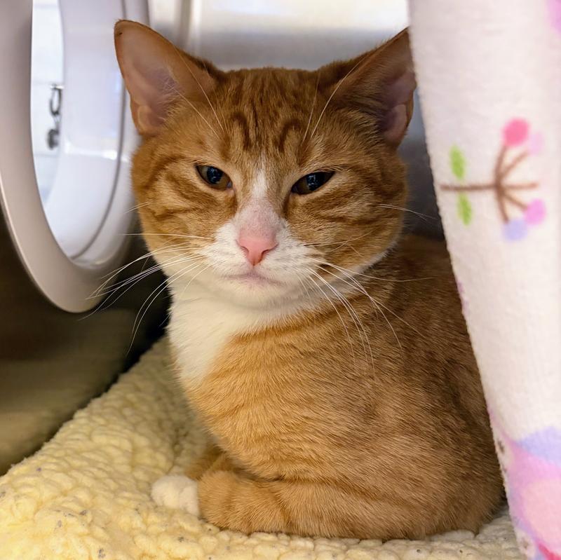 Jesse is a cat with short orange and white coat and gorgeous amber eyes. He`s loving and cuddly, but it`s been a bit of an adjustment for him at the shelter. He`d love a quiet home of his own to relax in. Jesse has lived with other cats in the past and the shelter has been a lot for him to adjust to. He`s starting to relax but we know he`d like his very own space with his own family to love.
